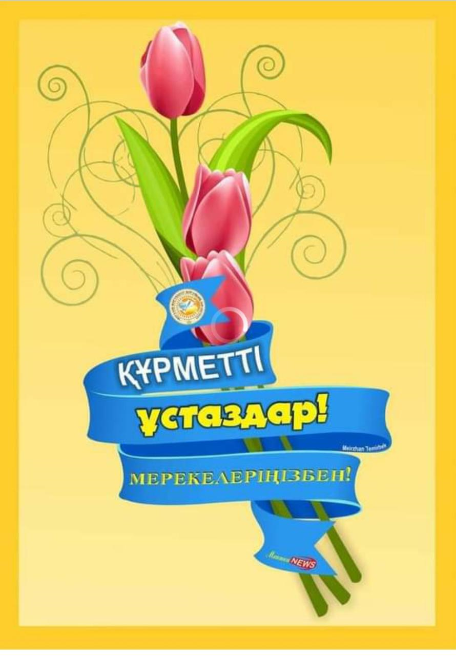 Құрметті ұстаздар! Сіздерді мерейлі мерекелеріңізбен шын жүректен құттықтаймыз! Отбасыларыңызға амандық пен береке, дендеріңізге саулық, еңбектеріңіз әрдайым еленіп, жемісті болуына тілектеспіз!
