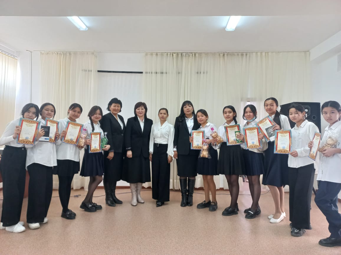 28- ақпан күні "Тіл - ең асыл құндылығымыз!" атты қазақ тілі мен әдебиеті пәні айлығының жабылу кеші өткізілді. Кешті мектептің қазақ тілі мен әдебиеті пәні ұстаздары " Беу-айдай ! " әнімен ашып берді. Мектебіміздің 8- сынып оқушылары биылғы мерейлі мерекелі ақын- жазушыларға арнаған арнау өлеңдерін оқып өтті. Сондай -ақ 6 "А" сынып оқушылары "Ертегілер елінде " атты ертегілерден үзінді көрсетіп , көрермендер арасынан оқушылар шығып ертегінің аты мен кейіпкерлерін атап өтті. Кешіміздің соңында айлық барысында өткізілген байқаулардың жеңімпаздары марапатталып өтті. Атап айта кетсек, "Қазақ тілім - байлығым!" тақырыбында өткізілген эссе байқауында 1- орынды иеленген Сабыр Аружан , 2-орынды иеленген 7А сынып оқушысы Нұрғабыл Зере , 3- орынды иеленген 8 "Ә" сынып оқушысы Бекен Айнара иеленді. "Жас ақындар мүшәйрасы" байқауында көзге көрініп жүлделі 1- орынды иеленген 7"Ә" сынып оқушысы Әсімхан Аяулым, 2- орынды иеленген 7 "ә" сынып оқушысы Қаршыға Перизат , 3- орынды иеленген 8"а" сынып оқушысы Сағаділдә Парасат , 3-орынды иеленген 6 "а" сынып оқушысы Тілеубек Шырай марапатталды.