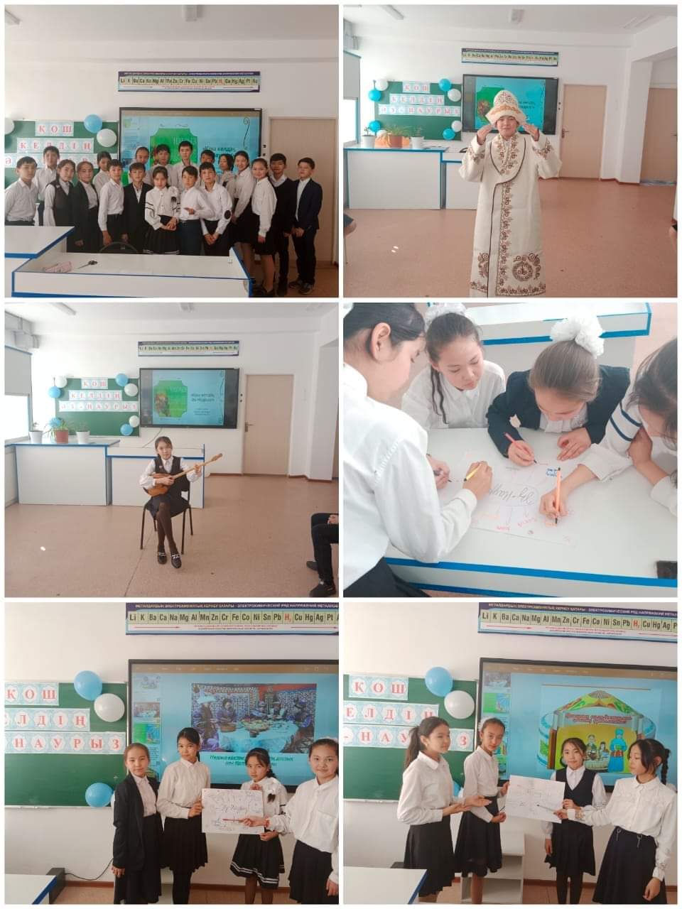 16.03.2023 ж. Амангелді орта мектебінде оқушыларға Ұлыстың ұлы Наурыз мерекесі тойлау туралы толық мағлұмат беріп, халқымыздың салт-дәстүрін, әдет-ғұрпын үйрете отырып, «Наурыз» Қазақтың ұлттық мейрамы екенін ашып көрсету мақсатында 6 «А» сынып оқушыларына «Қош келдің әз-Наурыз!» тақырыбында тәрбие сағаты өткізілді. Сынып жетекші: Кошаметова Г. А.