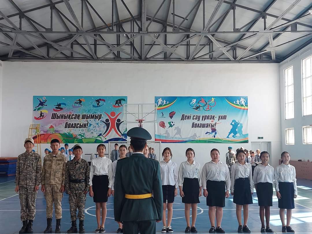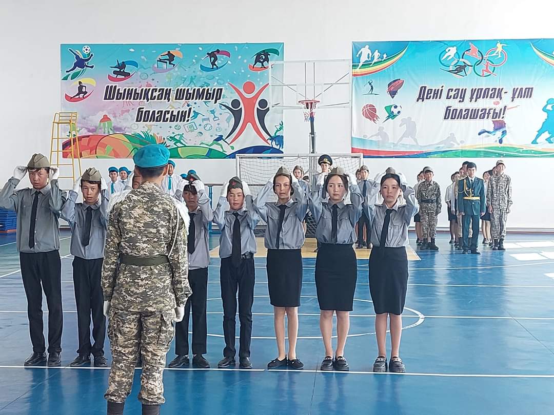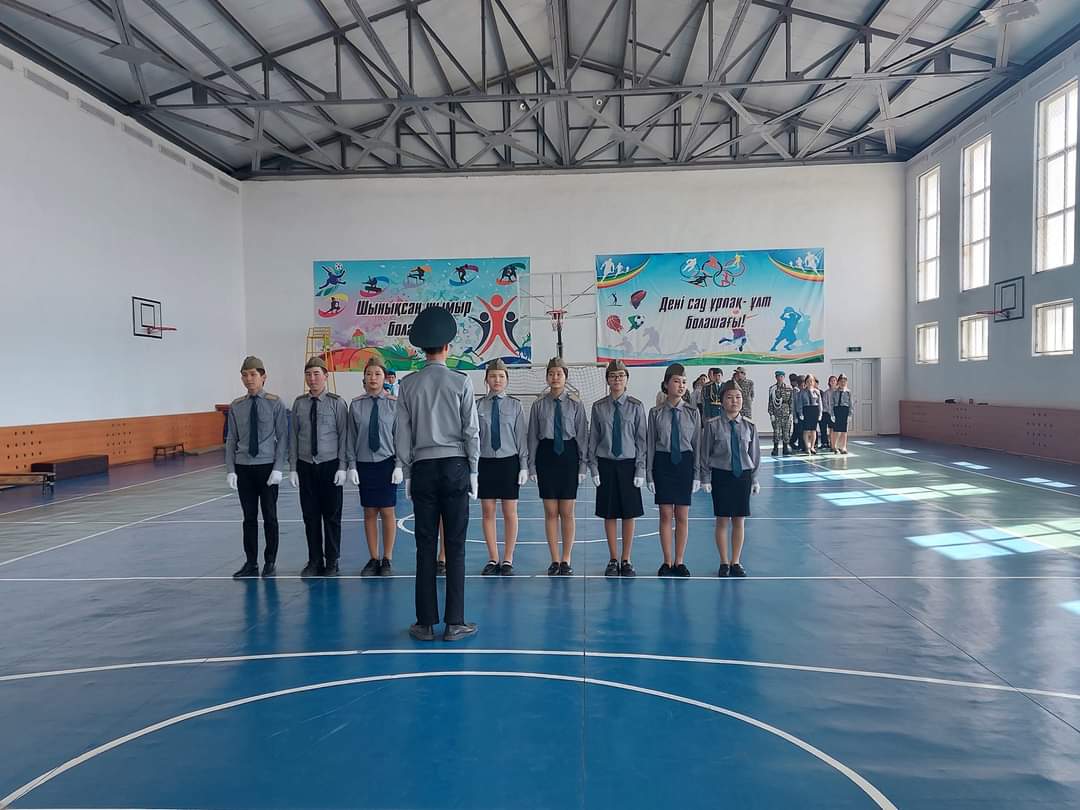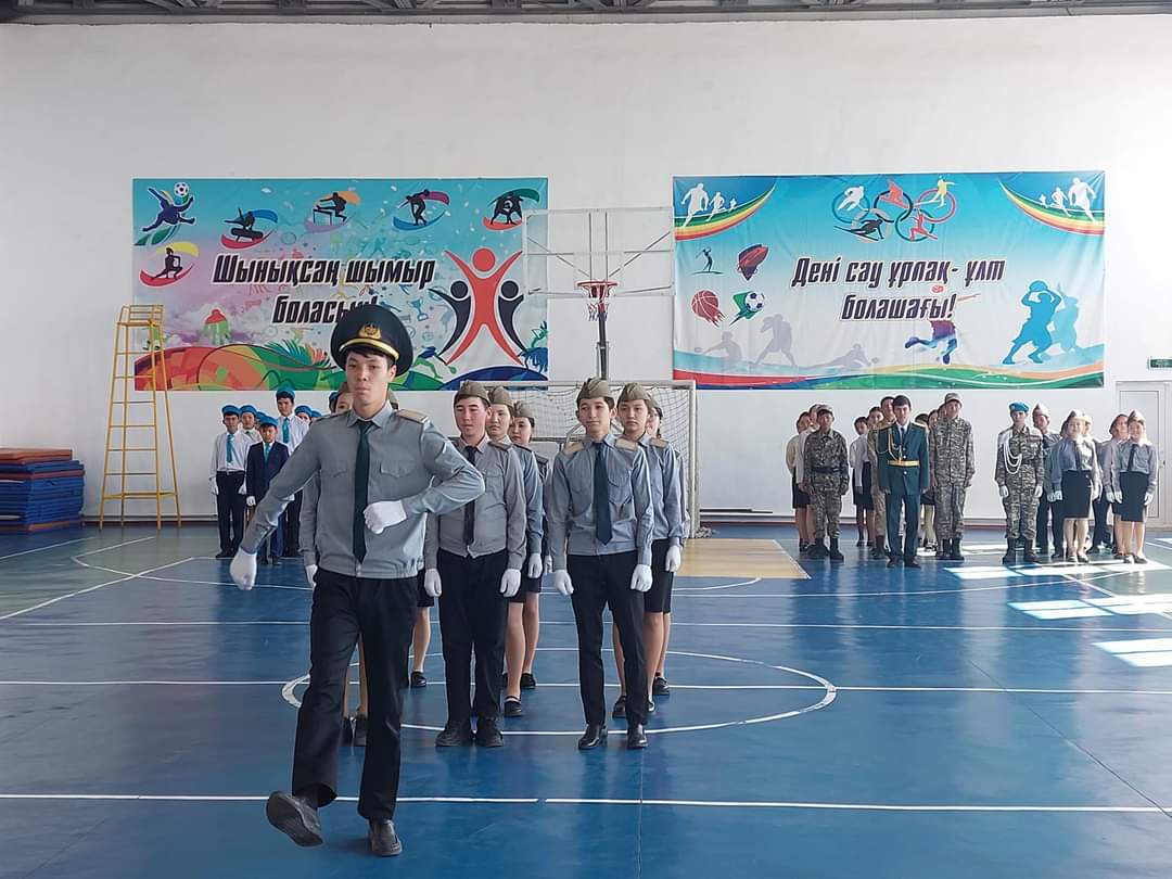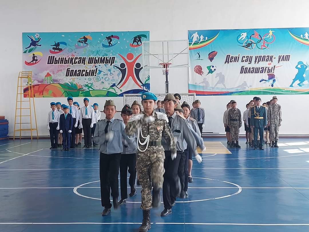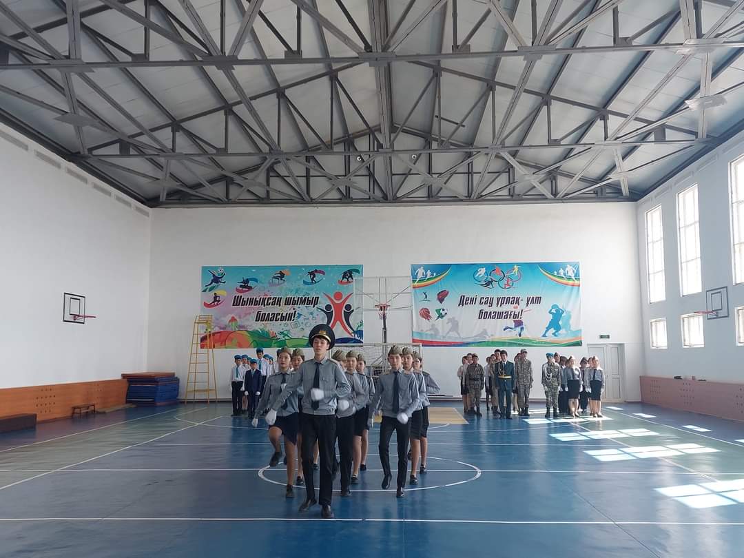 Оқушыларды патриотизмге,елін,жерін сүюге және халқын құрметтеуге,салауатты өмір салтын қалыптастыру,әскери патриоттық машықты дамыту мақсатында Ұлы жеңістің 78жылдығы және Қазақстан Республикасының Қарулы Күштерінің 31жылдығына орай,ұйымдастырылған "Сапта жүріп ән айту"байқауына 8-10сынып оқушылары қатысып,l-орынға 10сынып "Алаш" командасы,ll-орын 8әсынып "Сұңқар"командасы,lll-орын 8а сынып "Жас сарбаз"командасы марапатталды.