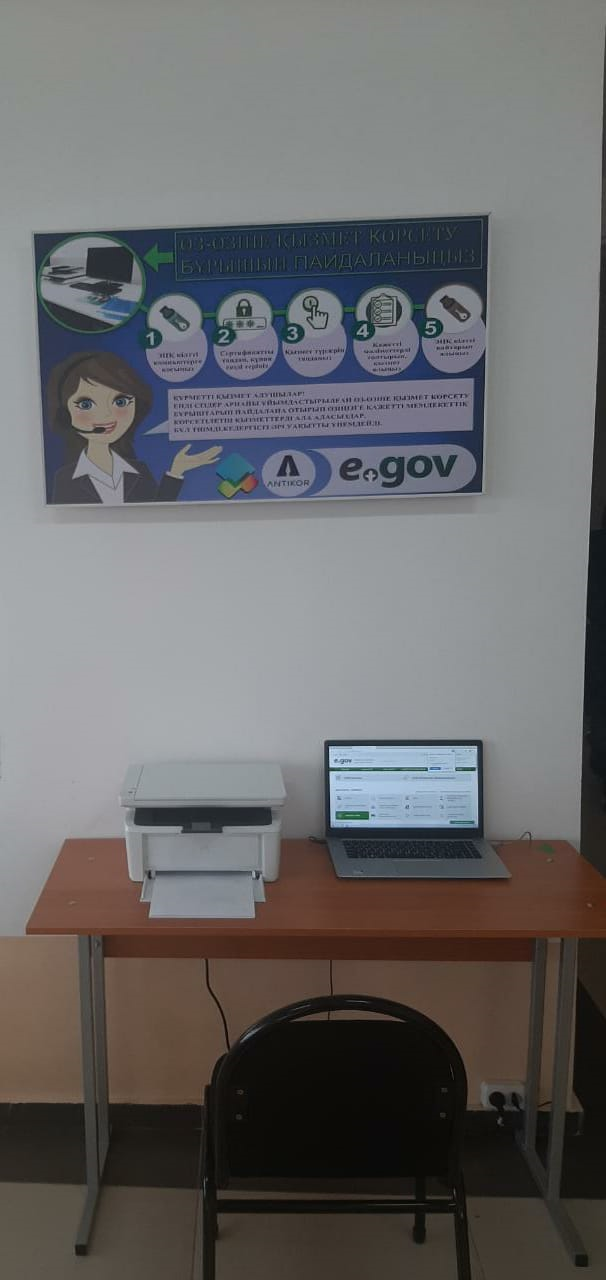 "Өзіне-өзі қызмет көрсету" бұрыштарында кез-келген азамат өздігінен ақпарат ала алады. Қызметтерді алу кезінде азаматтарға бетперде тағып, арақашықтықты сақтау қажет.«Egov.kz» электронды веб-порталы арқылы электронды қызметтерді алу бойынша, жауапты маман көмек көрсететін болады.