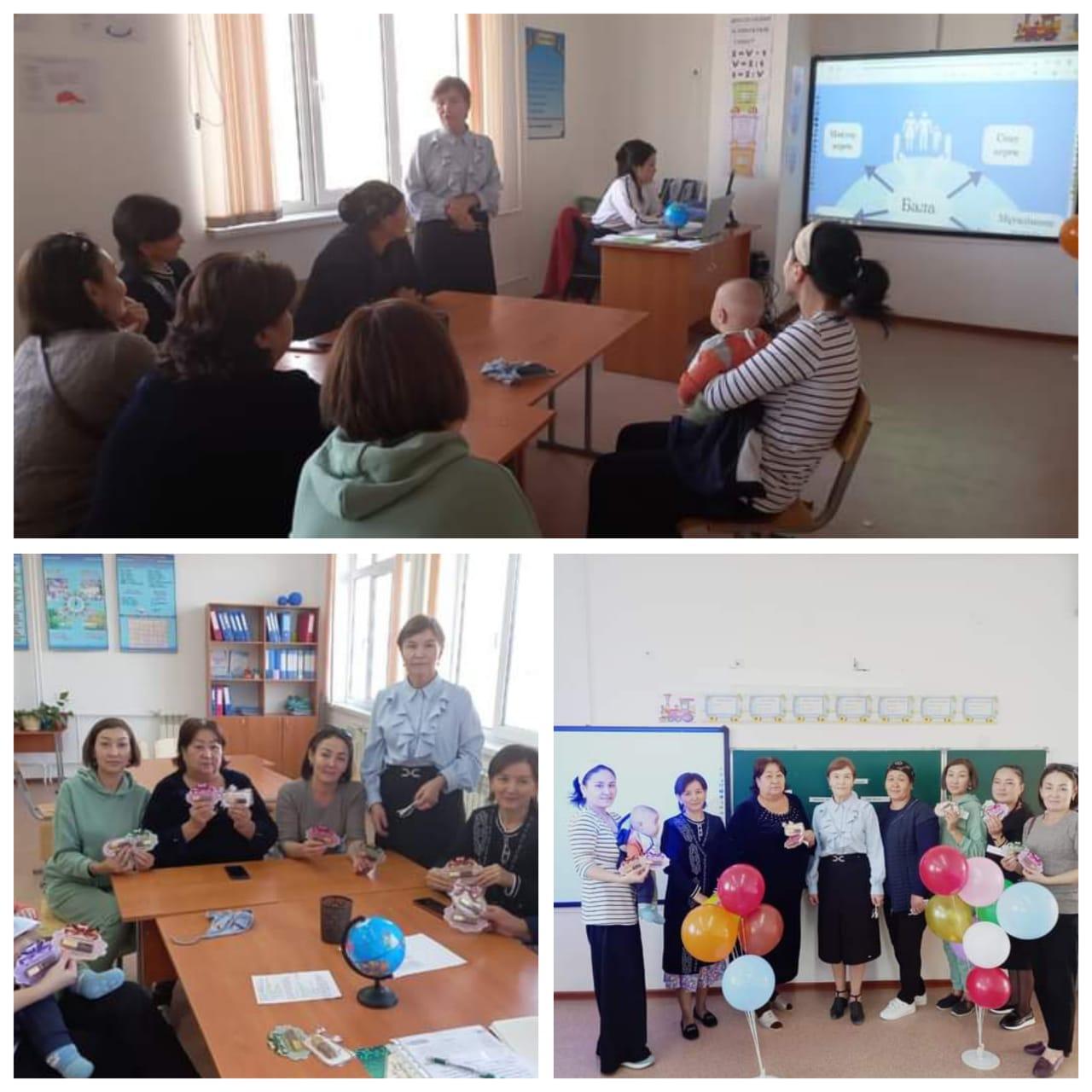 Мақсаты: Отбасы тәрбиесінде ата-ананың балаға тәрбиесіне ықпалын арттыру. Сынып жетекшісі К.Б.Елібаева "Бала тәрбиесіндегі отбасының ролі" тақырыбында баяндама оқылды. "Ата-ана  болам десеңіз"  тақырыбында тренинг өткізілді. Ата-аналар балаларының тәртібі мен білімі туралы толық мәлімет алды және өз ойларын ортаға салды. Ата-аналар жиналысы өз деңгейінде тамаша өтті.