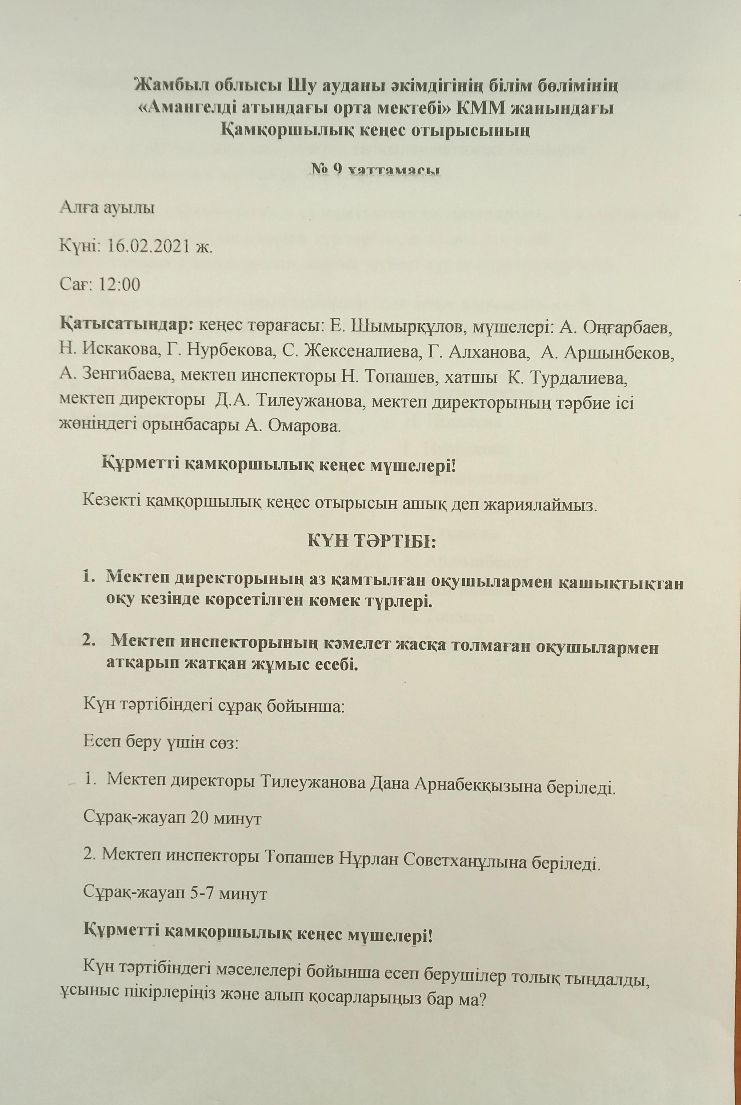 Қамқоршылық кеңес » СШ им.Амангелды
