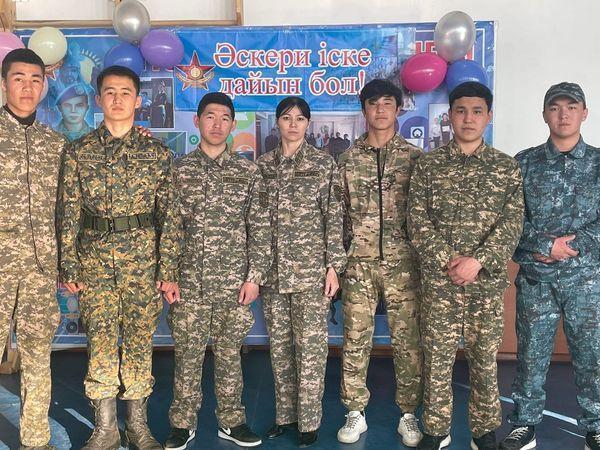Қазақстан Республикасының Қарулы Күштеріне 30 жыл толуына байланысты, оқушылардың Отанға деген сүйіспеншілік, патриоттық сезімін ояту, адамгершілік, тәртіптілік ,жастар мен армия арасындағы өзара байланысты нығайту мақсатында АӘТД пәні оқытушы- ұйымдастырушысы Ф.Б.Айманбетованың ұйымдастыруымен 10-11сынып,"Жас сарбаз" сыныбымен "Әскери іске дайын бол!" атты әскери-патриоттық эстафеталық сайыс өтті.