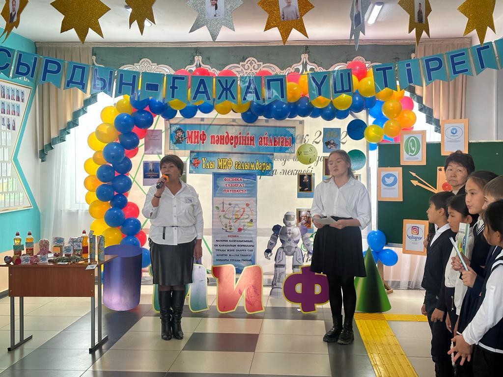 10.01.2023ж "Ғасырдың-ғажап үш тірегі" атты Математика, Информатика, Физика пәндерінің Оқушылардың пәнге қызығушылығын,олардың танымдық ізденістерін ояту;Логикалық ойлау қабілеттерін пәнге деген ынтасын,белсенділігін арттыру;Білімдерін жүйелі қамтамасыз ету мақсатында оқушылар мен ұстаздар арасында салтанатты ашылу сәті болды. Кештің барысында оқушыларға ашық сабақтар мен сыныптан тыс сабақтардың жоспары таныстырылып,оқушылармен логикалық сұрақтар қойып, түрлі ойындар ойнатылып,осы пәндерге қатысты тамаша ән орындалды