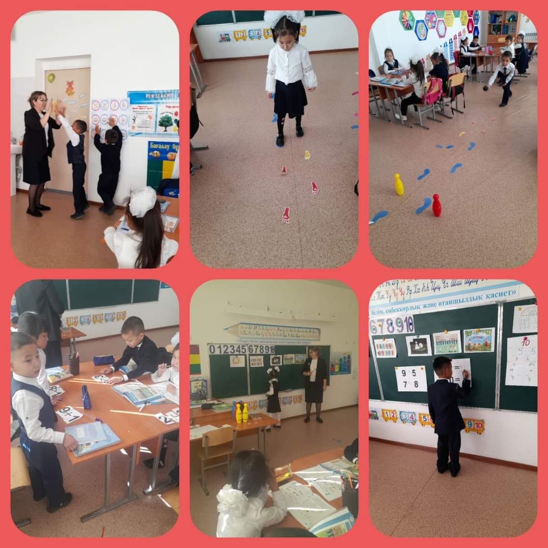 Амангелді атындағы орта мектебінің бастауыш сынып мұғалімі:Тажитаева Г. бастауыш сынып айлығында жоспарланған,математика пәнінен "10 санының құрамы" тақырыбында ашық сабақ өтті.Сабақтың мақсатына сай,оқушыларды10 санын цифрдан ажыратып,біртаңбалы сандарды тәсілдермен:жиынтығымен,таяқшалармен және сан сәулесінен көрсетуге үйретіп,дағдыландырды.
