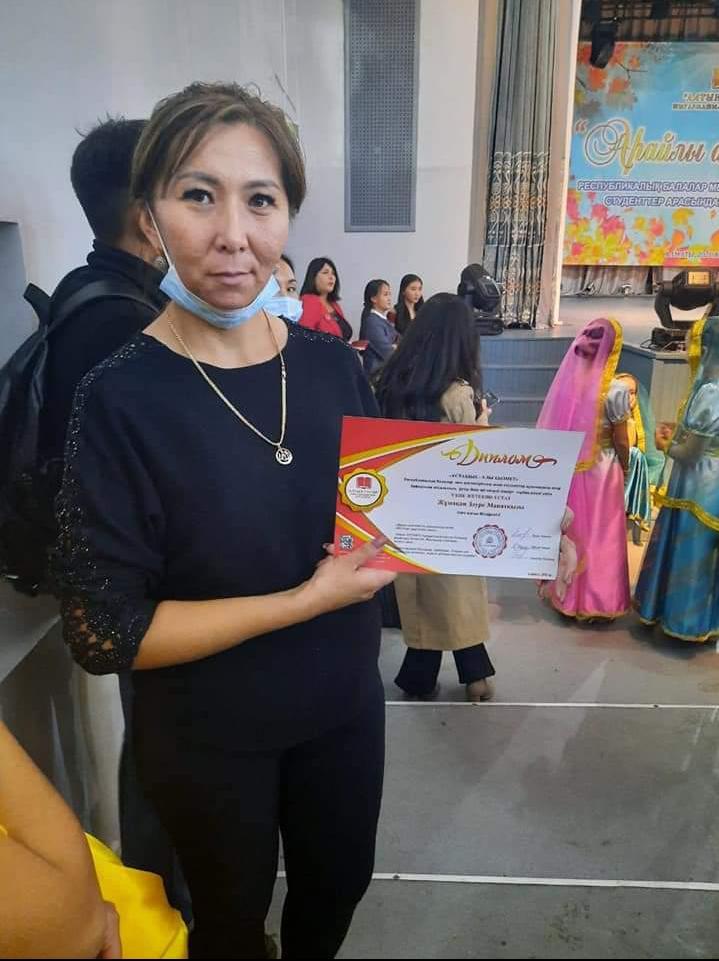 09 ноябрь 2021 0 1 2 3 4 5 "Ұстаздық-ұлы қызмет" Республикалық балалар мен жасөспірімдер және студенттер арасындағы өнер байқауына атсалысып,рухы биік әрі өнерлі шәкірт тәрбиелегені үшін "Үздік жетекші -ұстаз" ЖҰМАҚАН ЗӘУРЕ МАНАТҚЫЗЫ