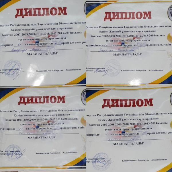 Қазақстан Республикасының Тәуелсіздігінің 30-жылдығына және Қазбек Жексенбі ұлын еске алуға арналған бокстан 2007-2008,2009-2010,2011-2012,2013-2014 жылғы туған жасөспірімдер арасындағы турнирінде 30 салмақ дәрежесінде II - орын алған Көлбай Дастан,26 салмақ дәрежесінде III-орын алған Жетісай Иманғали, 38 салмақ дәрежесінде III-орыналған Сағаділдә Мирас, +60 салмақ дәрежесінде III -орын алған Төрехан Темірлан Амангелді атындағы орта мектебінің оқушылары марапатталды.