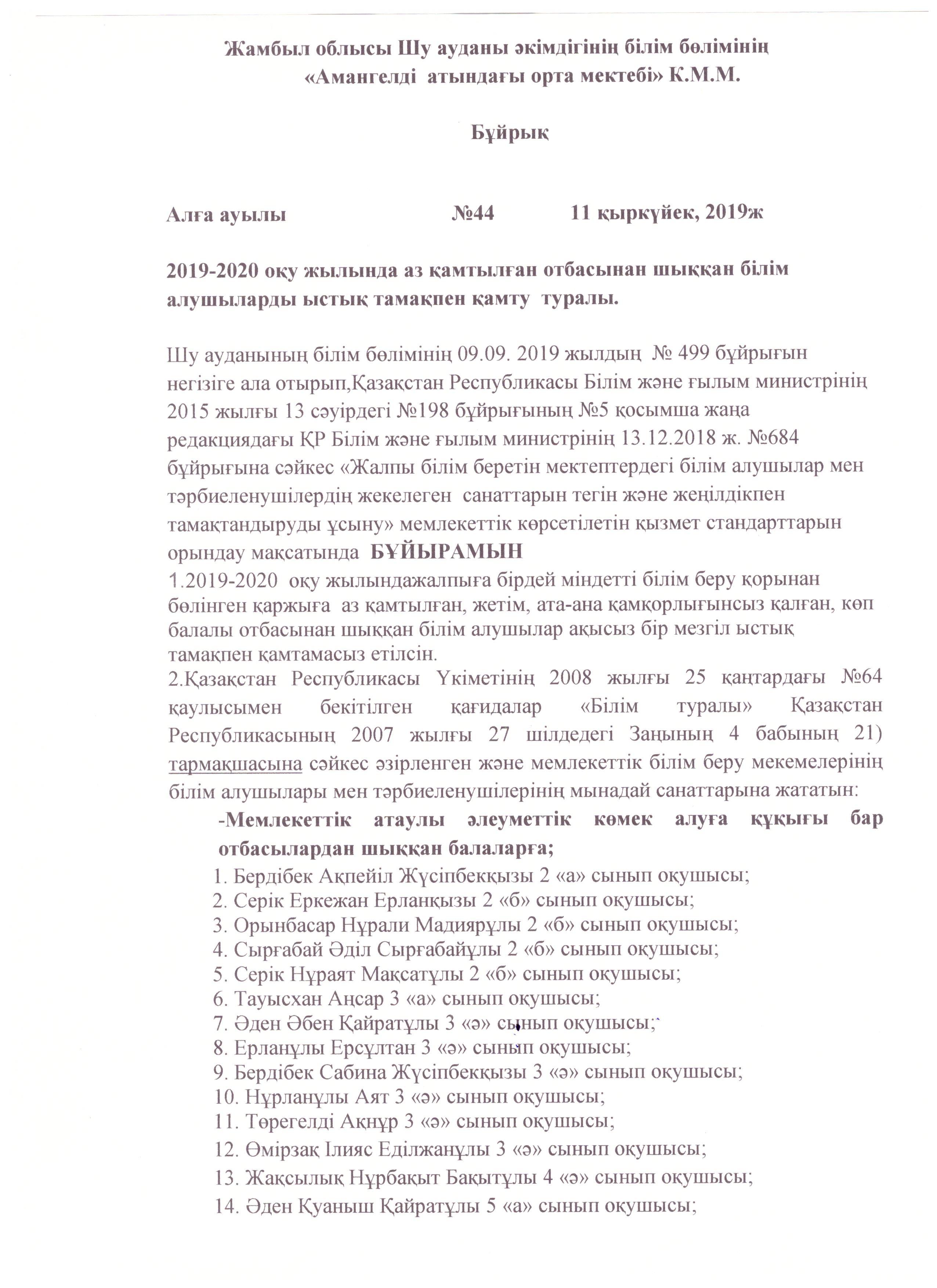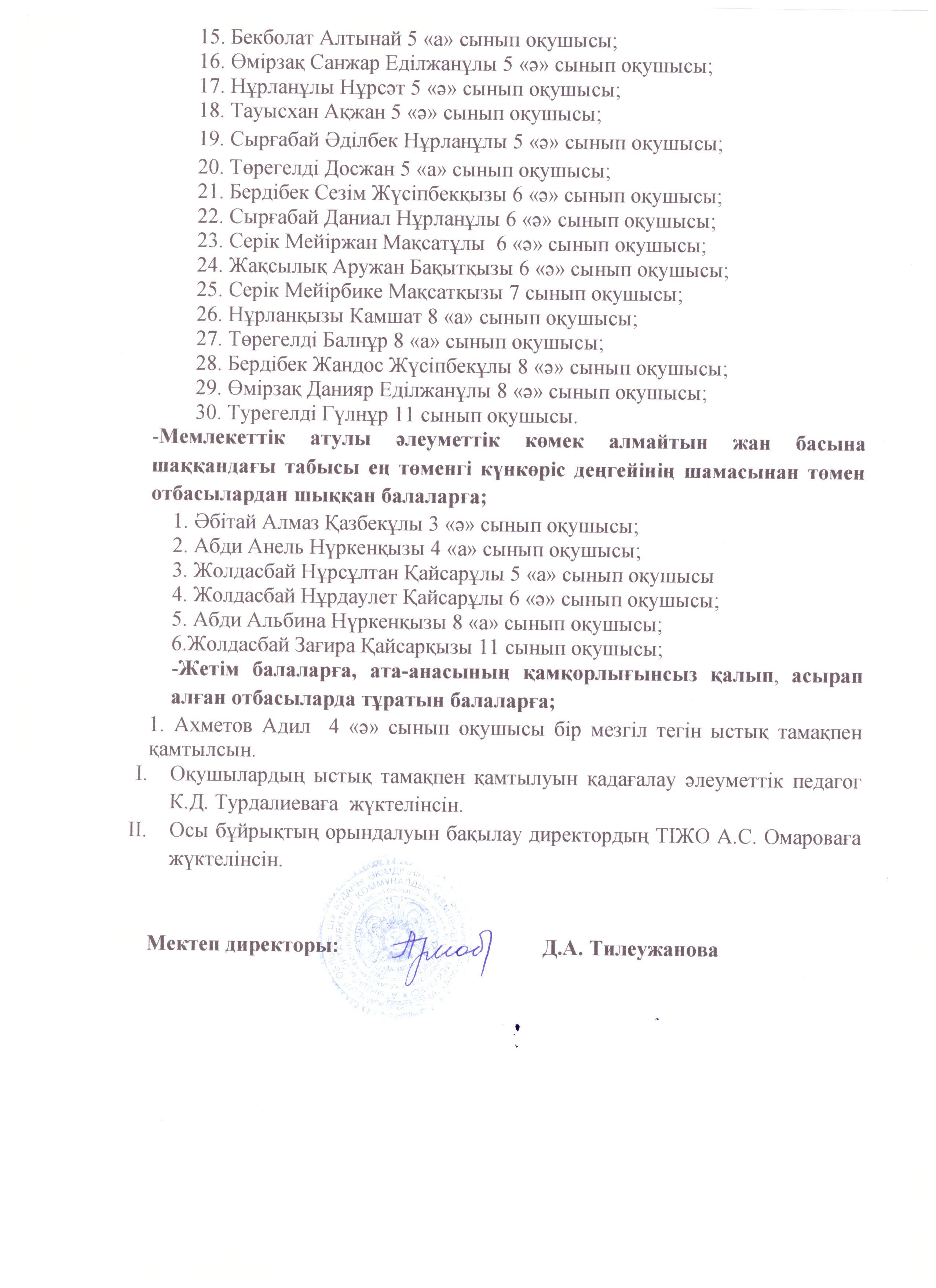 ыстық тамақтың бұйрықтары » СШ им.Амангелды
