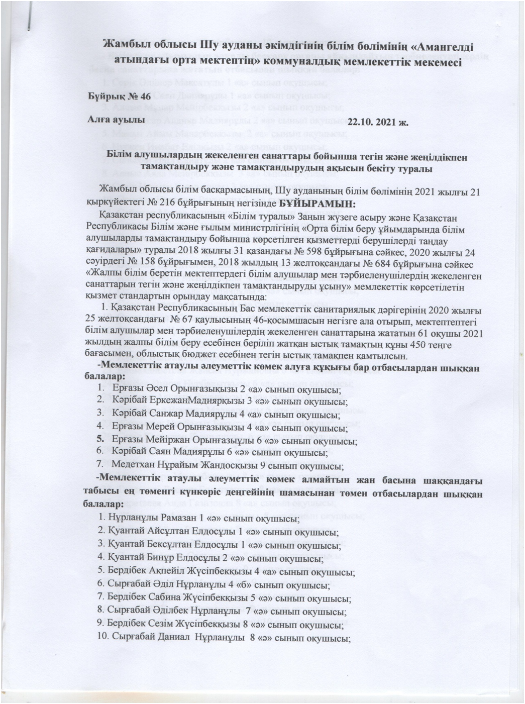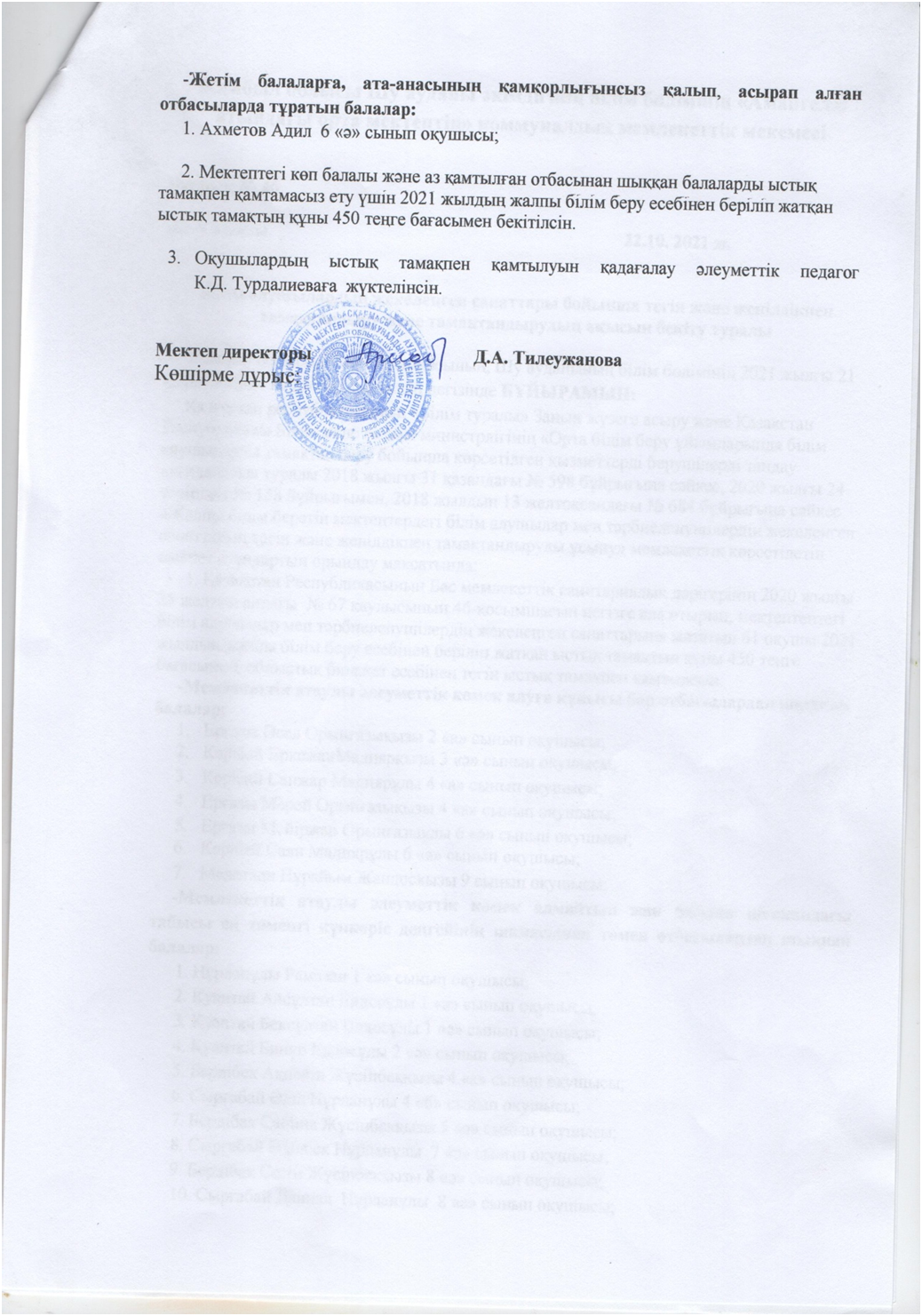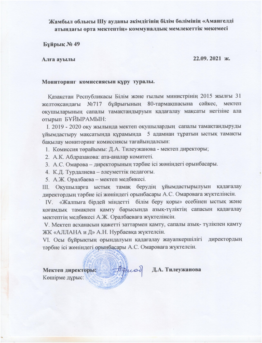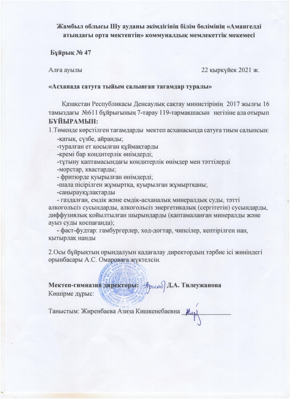 Ыстық тамақ бұйрықтары » СШ им.Амангелды