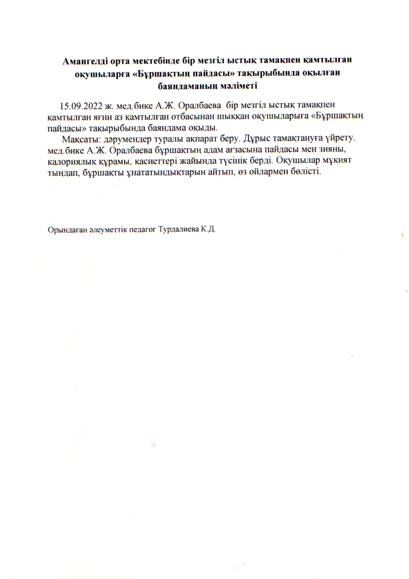"Бұршақтың адам ағзасына пайдасы" баяндама » СШ им.Амангелды