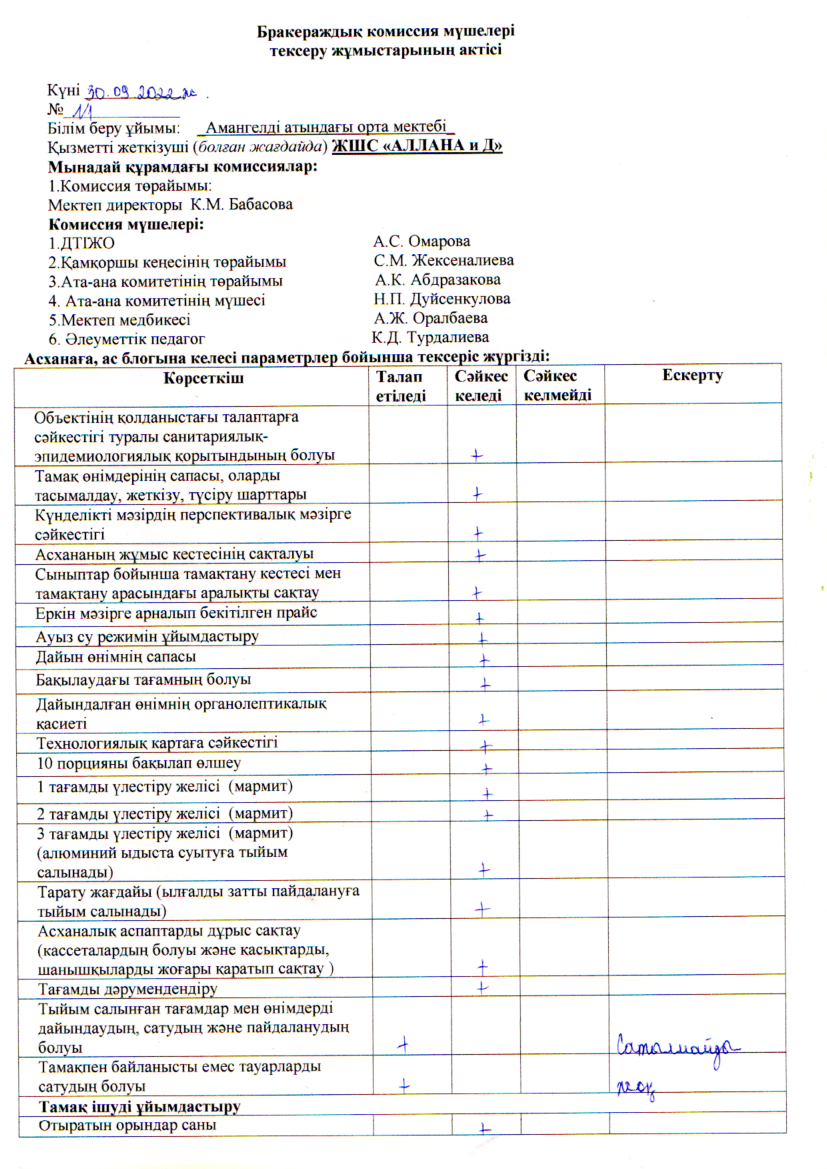 Бракераждық комиссия мүшелері тексеру жұмыстарының актісі №1 » СШ им.Амангелды