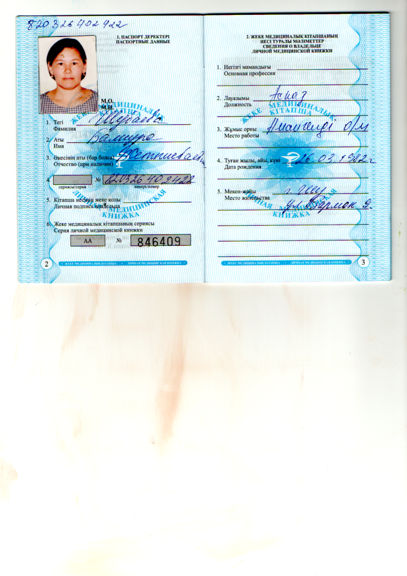 » » Аспазшының медициналық кітапшасы, куәлігі