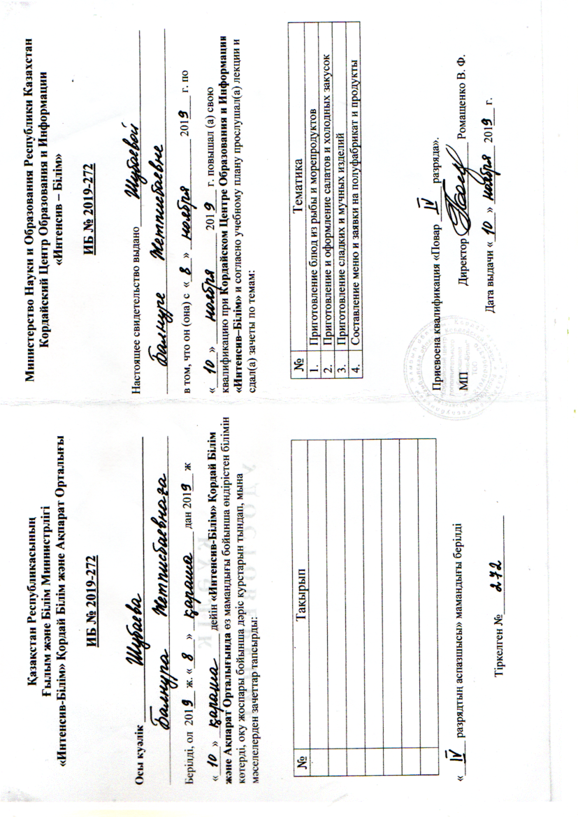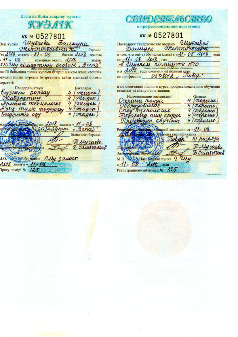 Аспазшының медициналық кітапшасы, куәлігі » СШ им.Амангелды