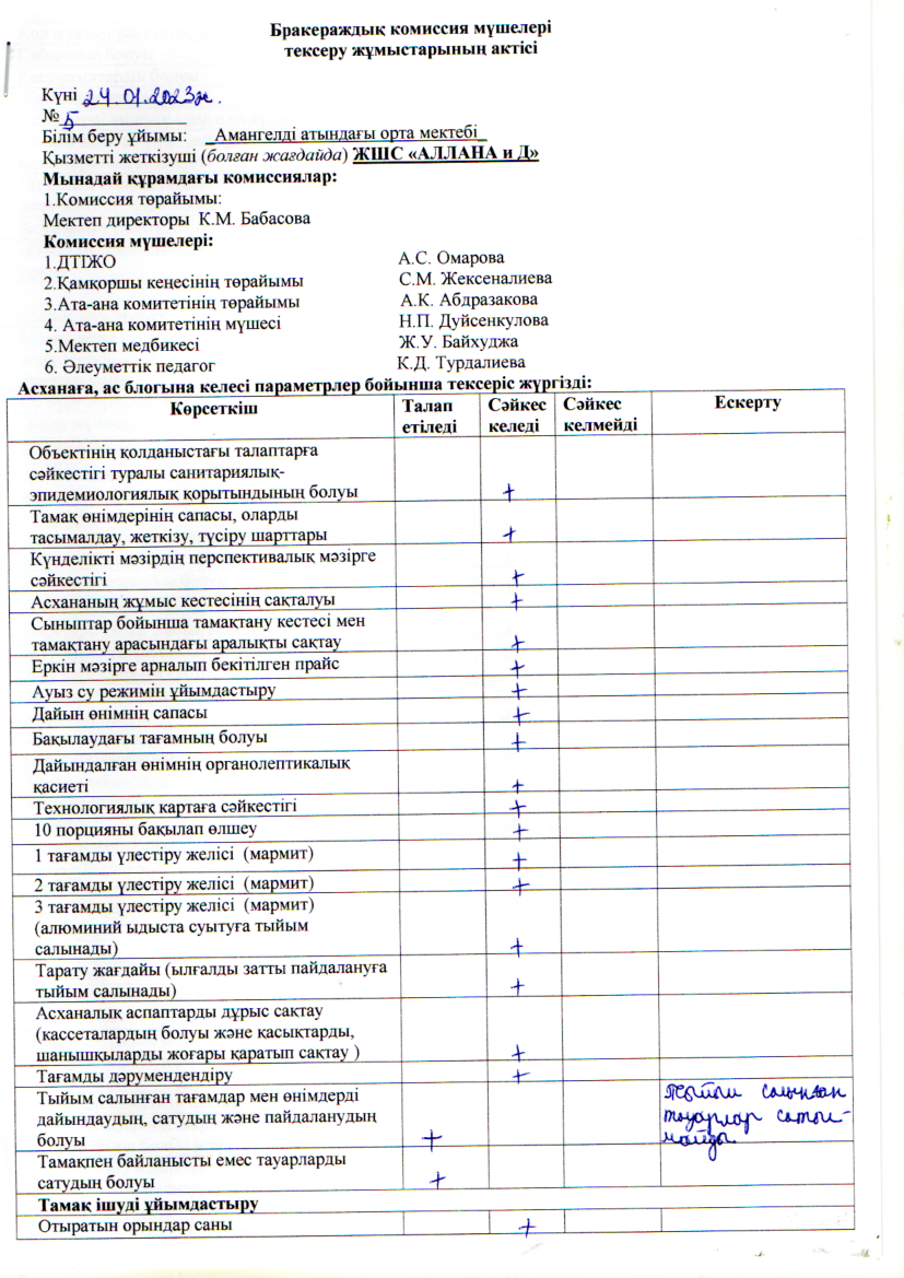 Бракераждық комиссия мүшелерінің тексеру жұмыстарының актісі № 5 » СШ им.Амангелды