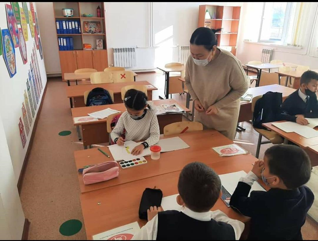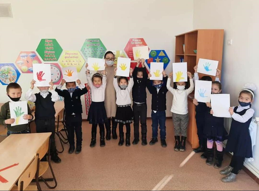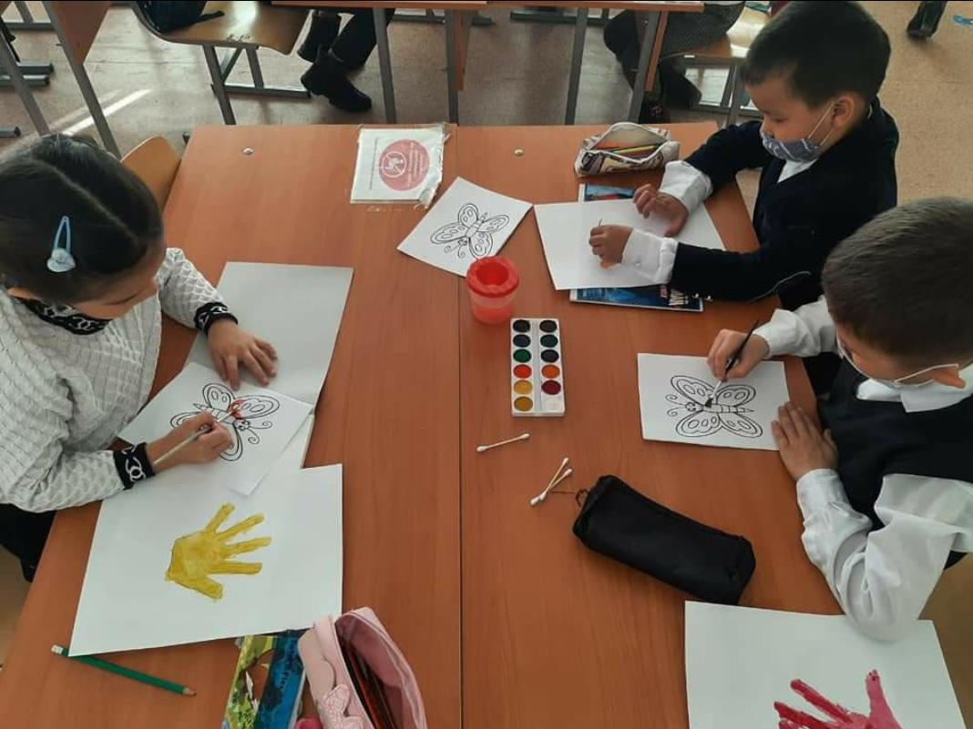 "Психологиялық кеңес беру" айлығының жоспарына сәйкес 1 сынып оқушыларымен "Біз бақытты баламыз" тақырыбында Арт терапиялық жаттығулар өткізілді