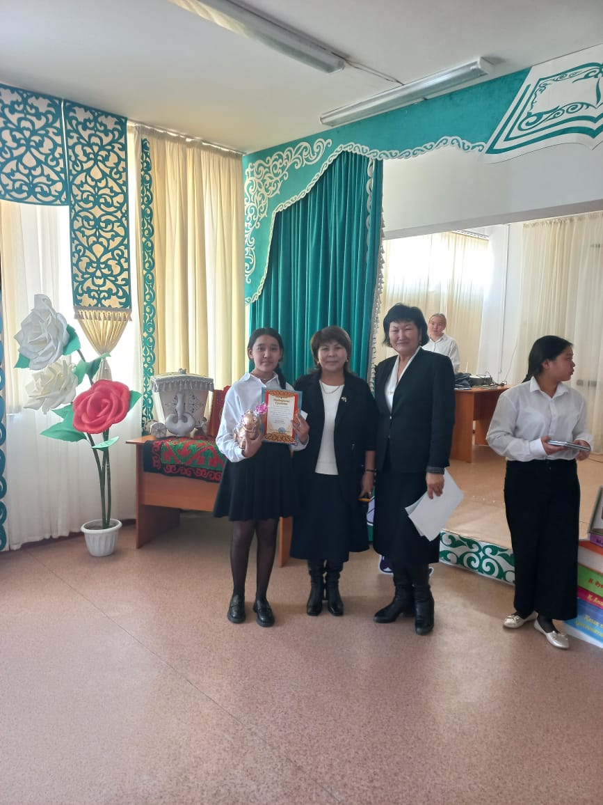 Айлық барысында атаулы ақындар мен жазушылардың мерейтойларына арнаған арнау өлеңдері үшін "Жас ақын" номинациясымен 8- сынып оқушылары Шайділда Аяжан, Тауысхан Ақжан, Мамыт Нұрайлым, Шоқан Балым марапатталды.