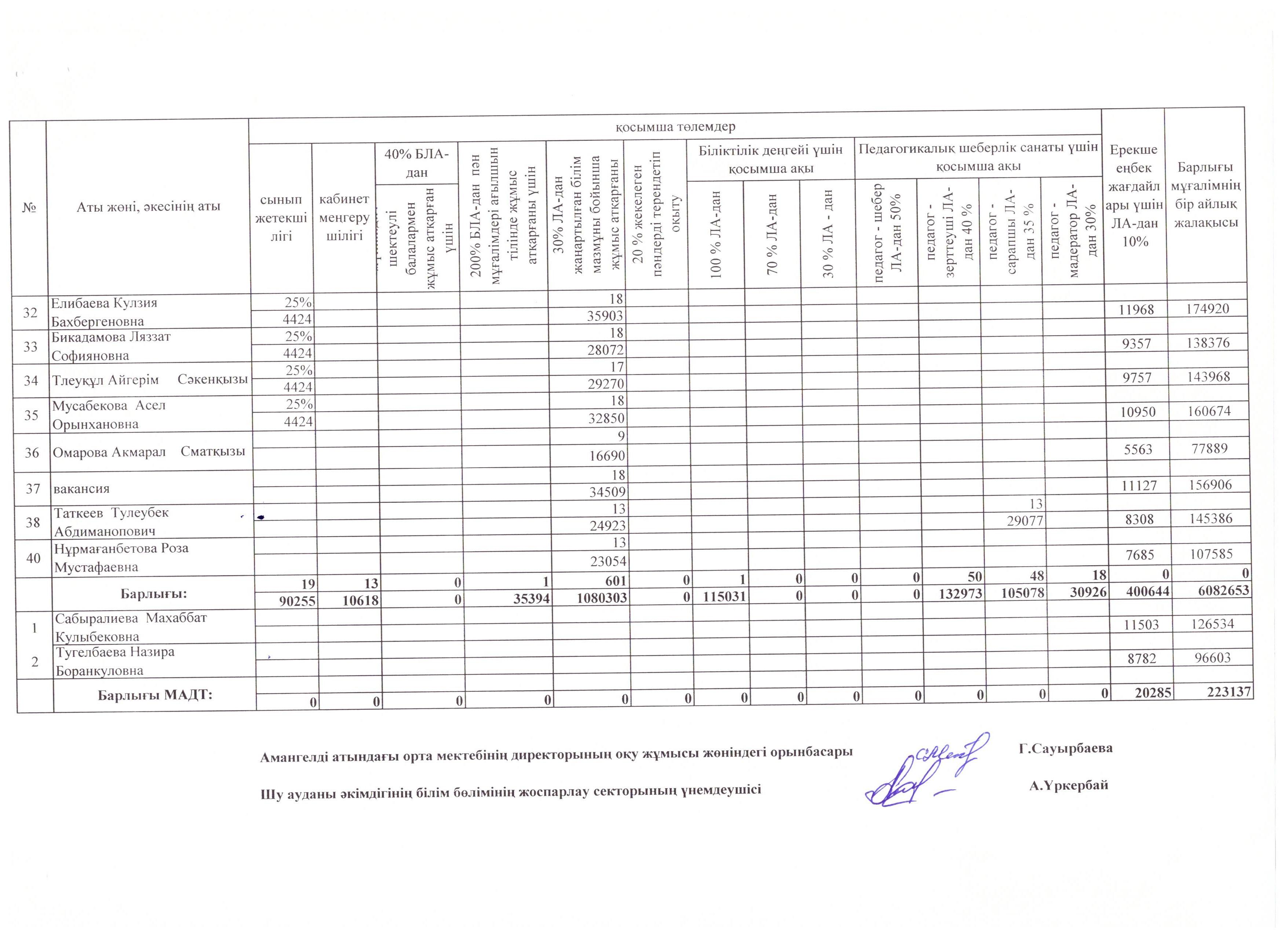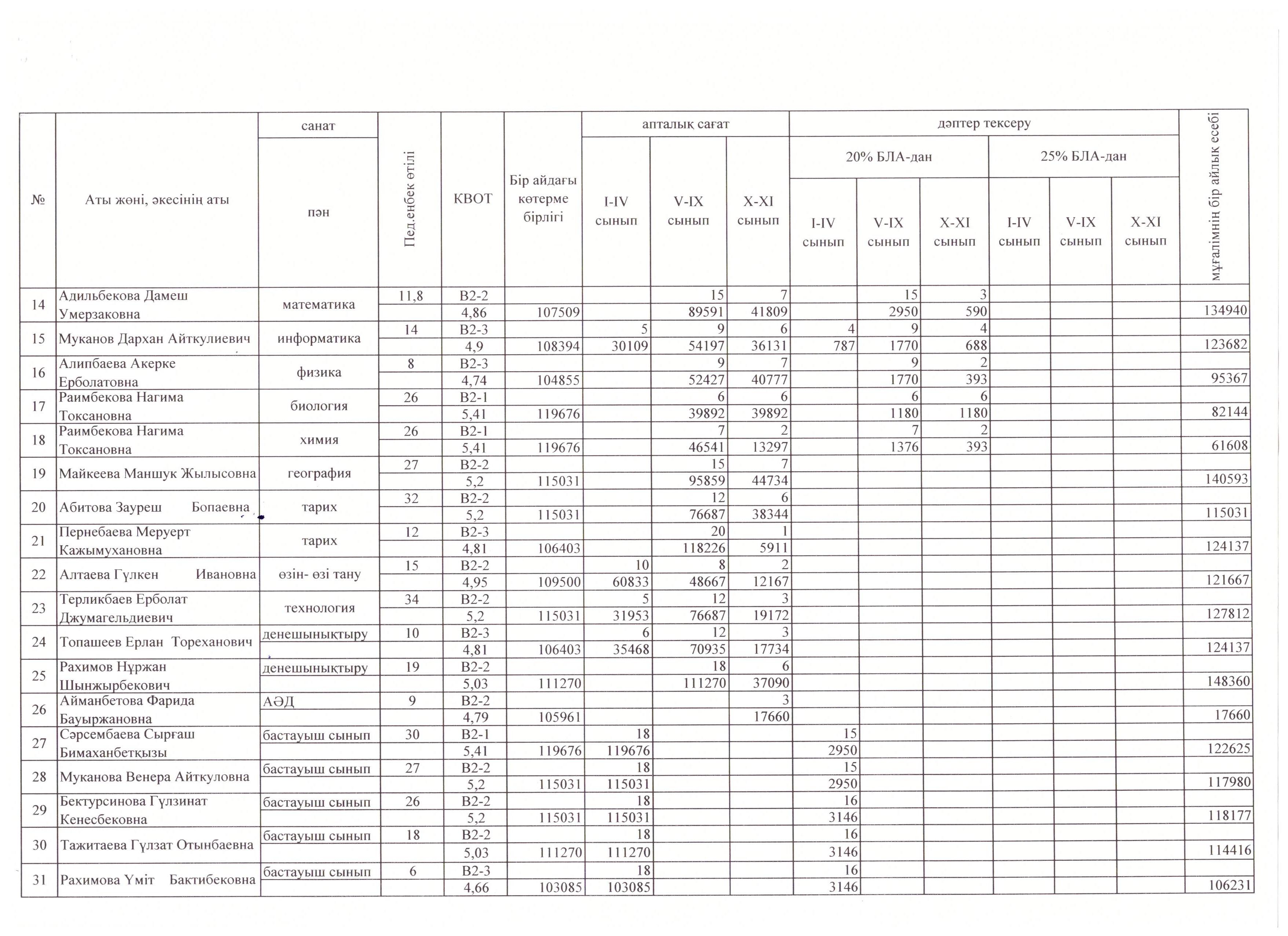 Штаттық кесте 2019-2020 оқу жылы қыркүйек айы » СШ им.Амангелды