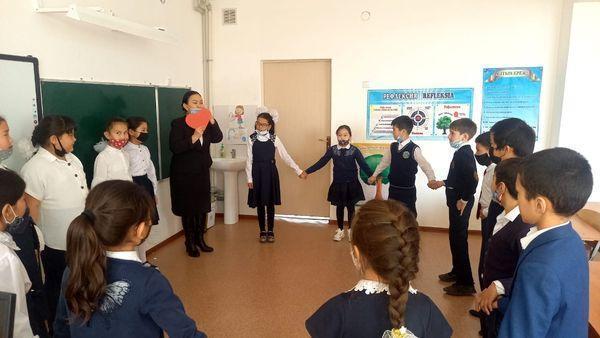 «Өзін-өзі тану:Сүйіспеншілік пен шығармашылық педагогикасы» атты онкүндік аясында 03.02.2022 жылы В.У.Алиева, Г.С.Кончекова мектеп психологтарының ұйымдастыруымен «Мейірімділік-асыл қасиет» тақырыбында 4 сынып оқушыларымен тренинг өткізілді. Мақсаты: оқушыларды мейірімділікке, бір-біріне деген құрметке және жылы сөйлеуге,жақсы нарсені бойларына жинауға үйрету.