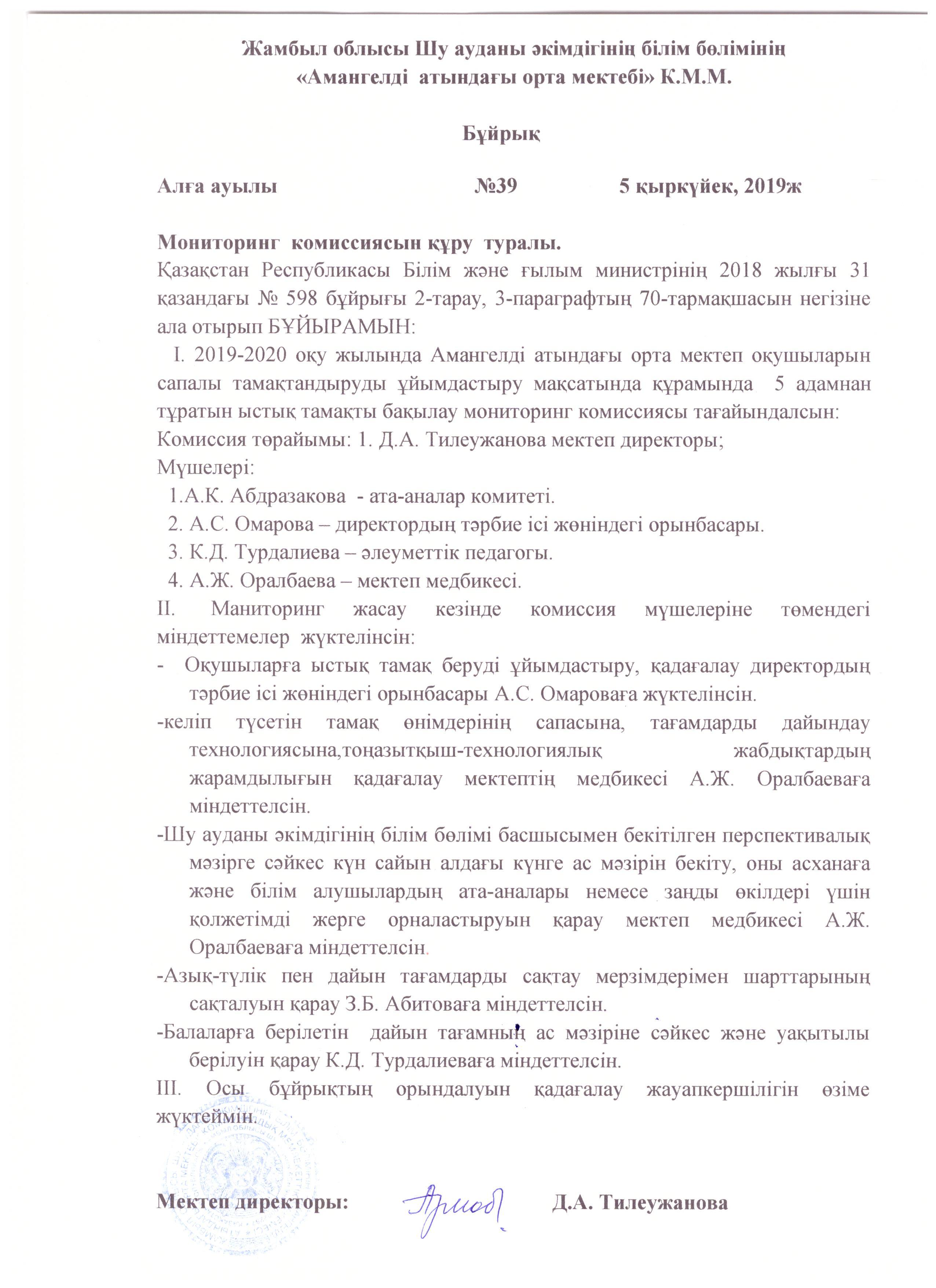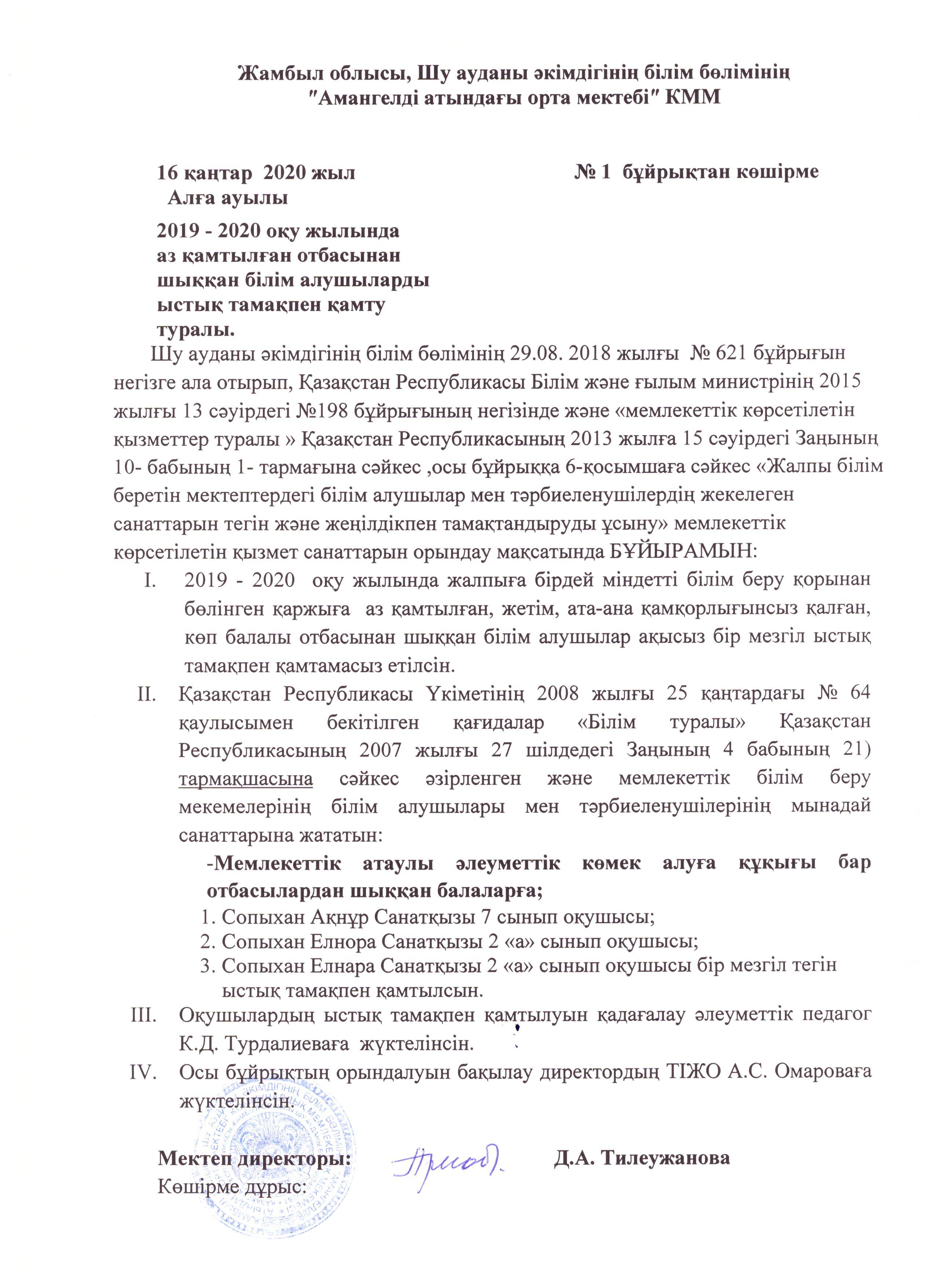 ыстық тамақтың бұйрықтары » СШ им.Амангелды