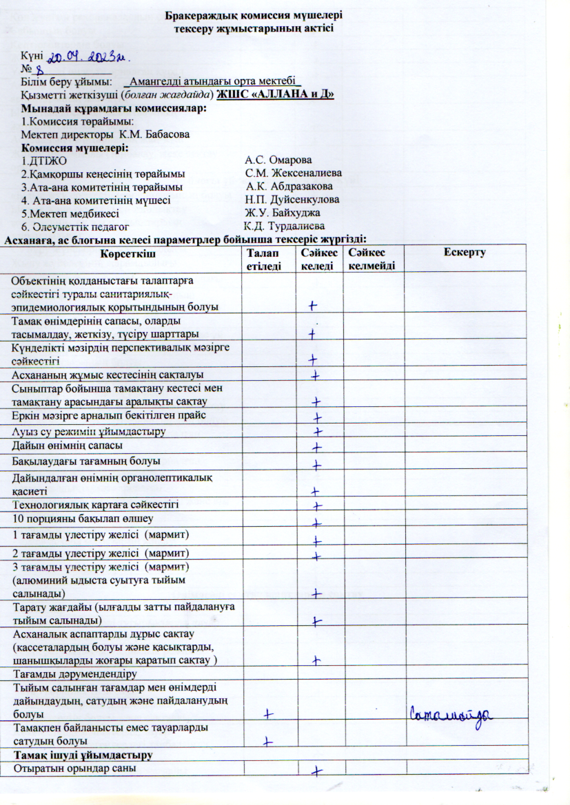 Бракераждық комиссия мүшелерінің тексеру жұмыстарының актісі № 7 » СШ им.Амангелды
